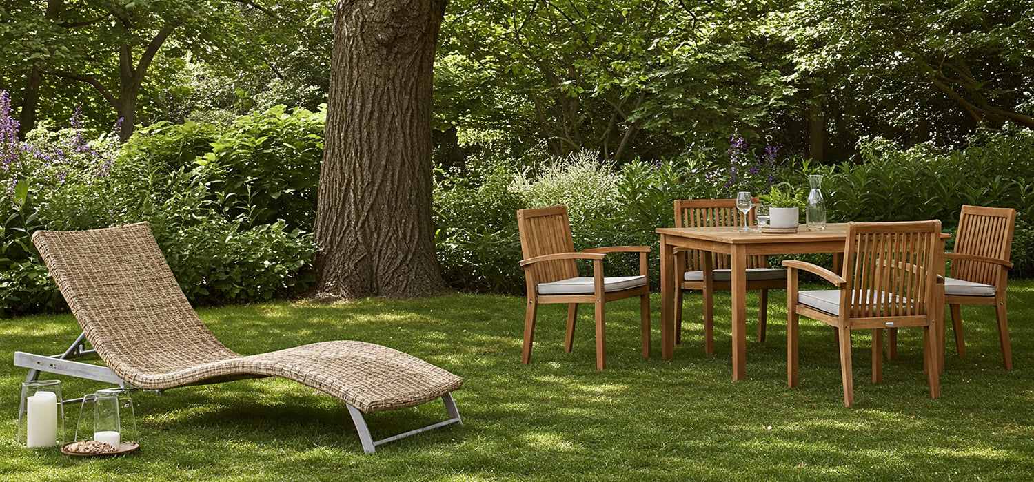 Teak has been a favourite for generations, and for good reason. It’s a hard-wearing wood that loves the outdoors. Packed with natural oils, it’s resistant to rot, insects, and harsh weather, making it perfect for garden furniture.